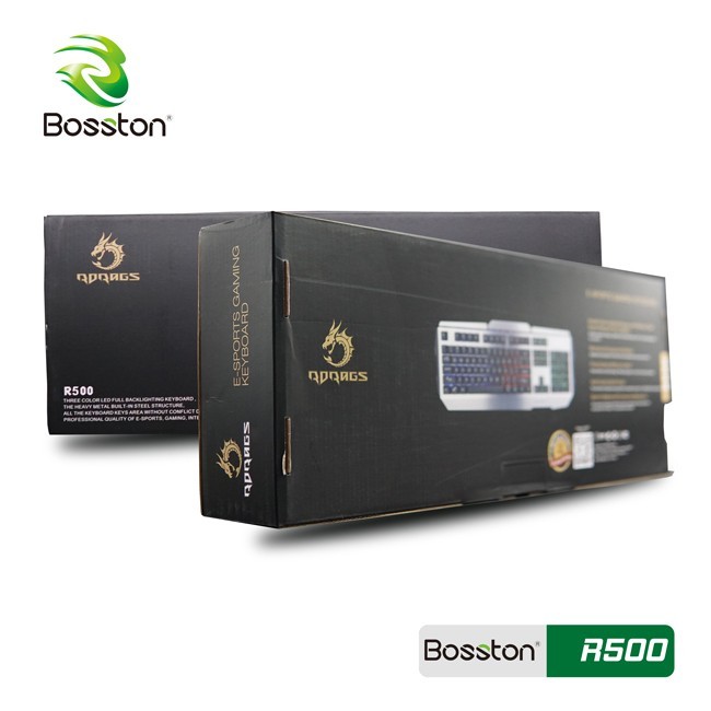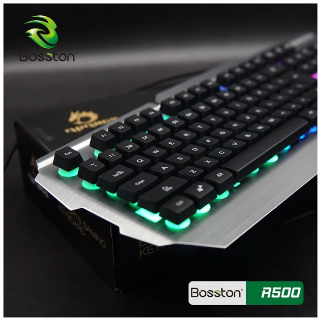 Bàn phím LED giả cơ chuyên game Bosston R500 với thiết kế tựa như 1 bàn phím cơ với đường nét và kiểu dáng rất phá cách, hệ thống đèn LED dưới nền cực kỳ ấn tượng với 7 gam màu có thể thay đổi tùy ý bằng phím Fn + Scroll Lock. Giúp người dùng, đặc biệt là các game thủ có thể thoải mái sử dụng vào ban đêm.