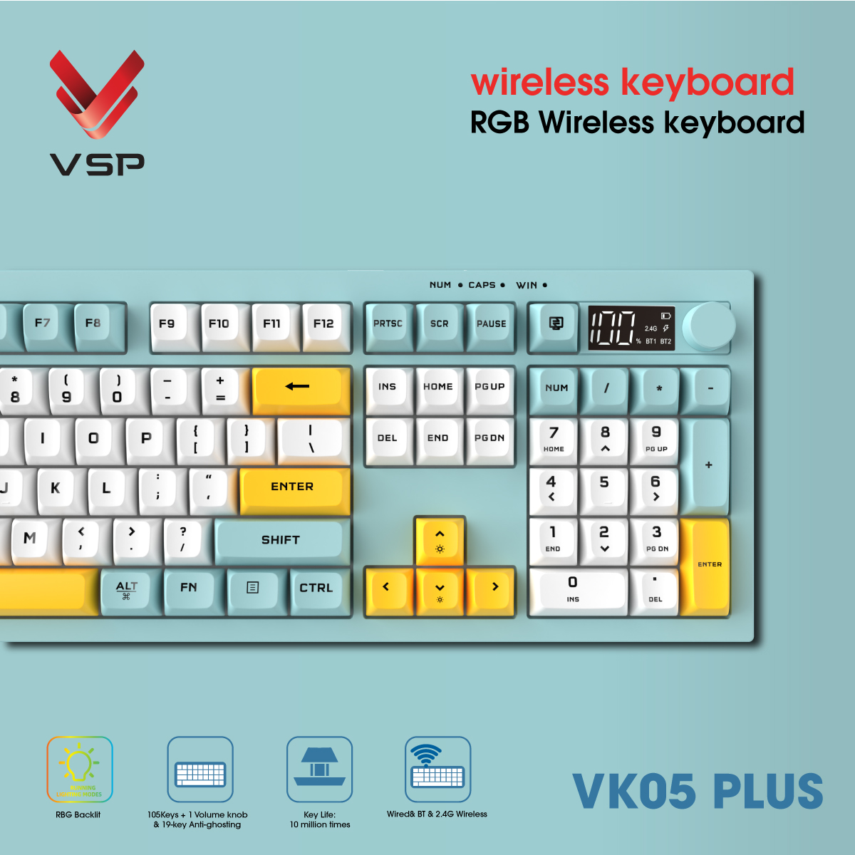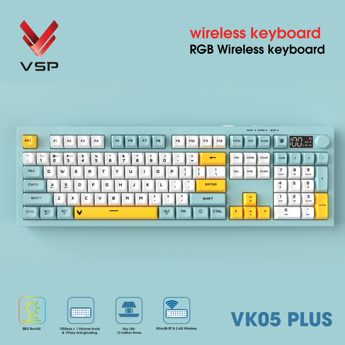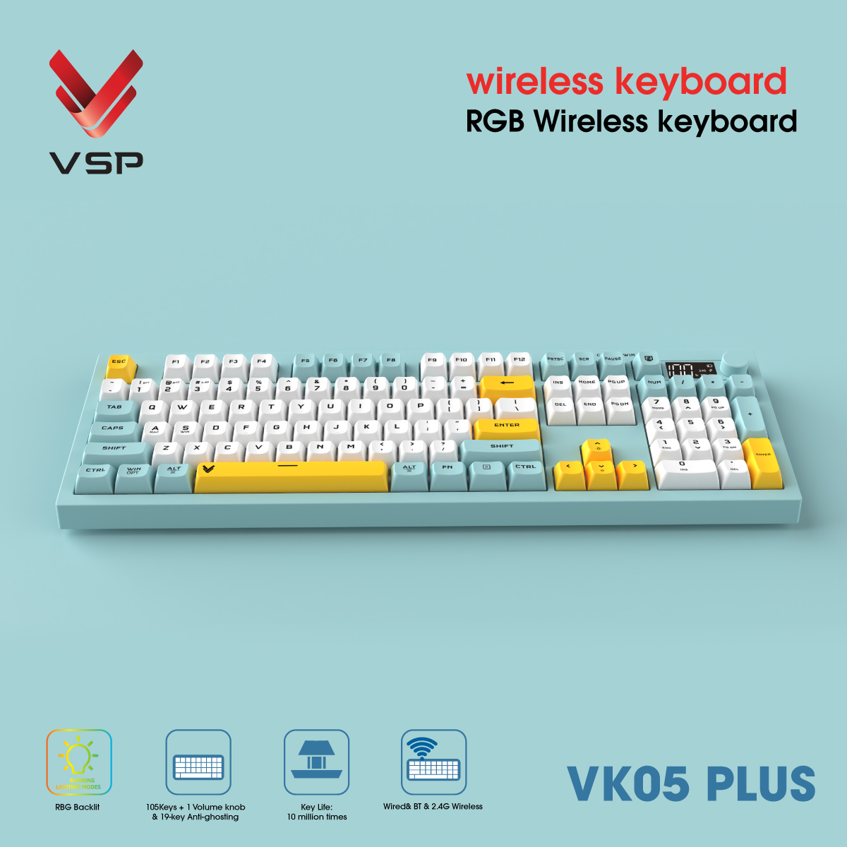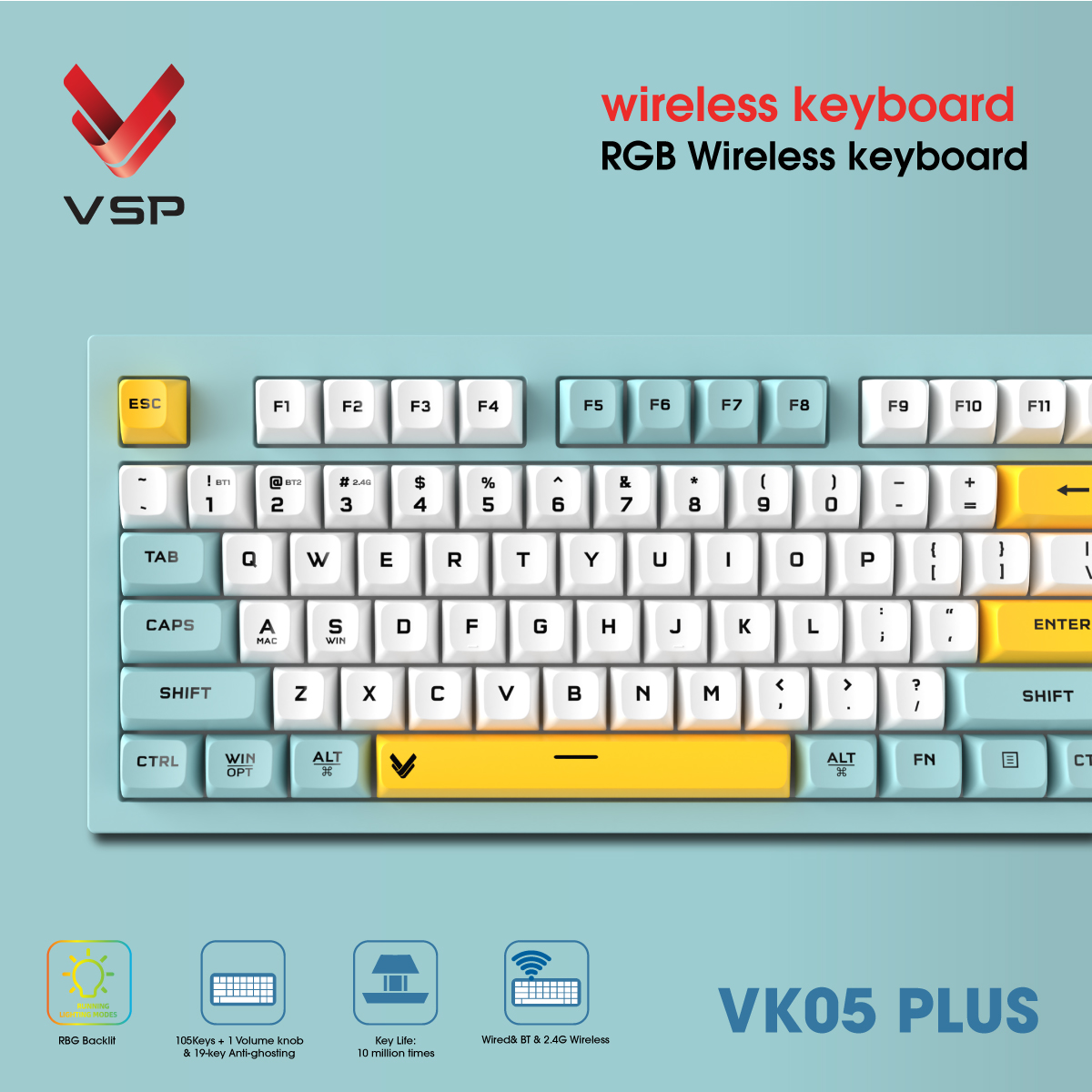 Bàn Phím Không Dây 3 Chế Độ VSP VK05 Plus