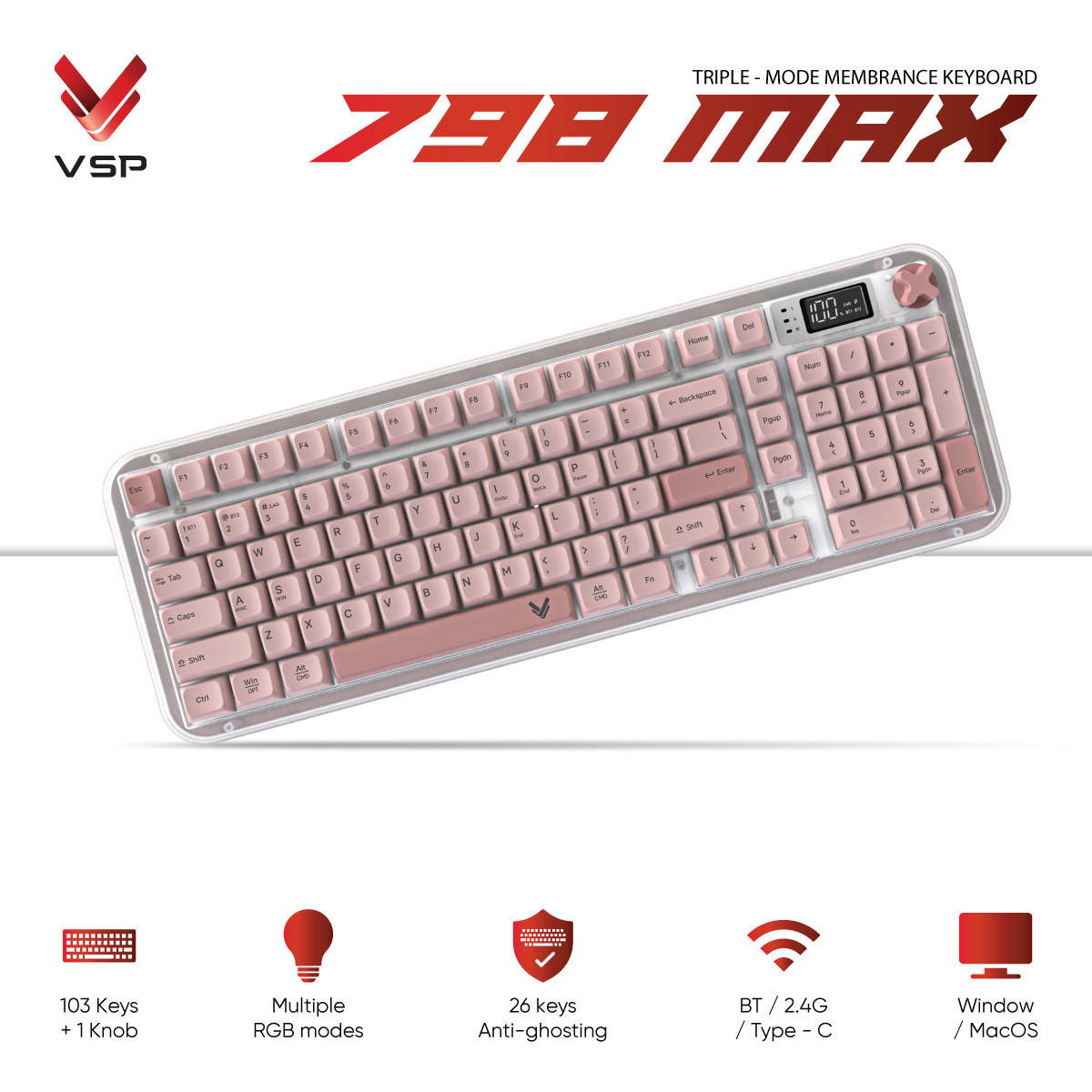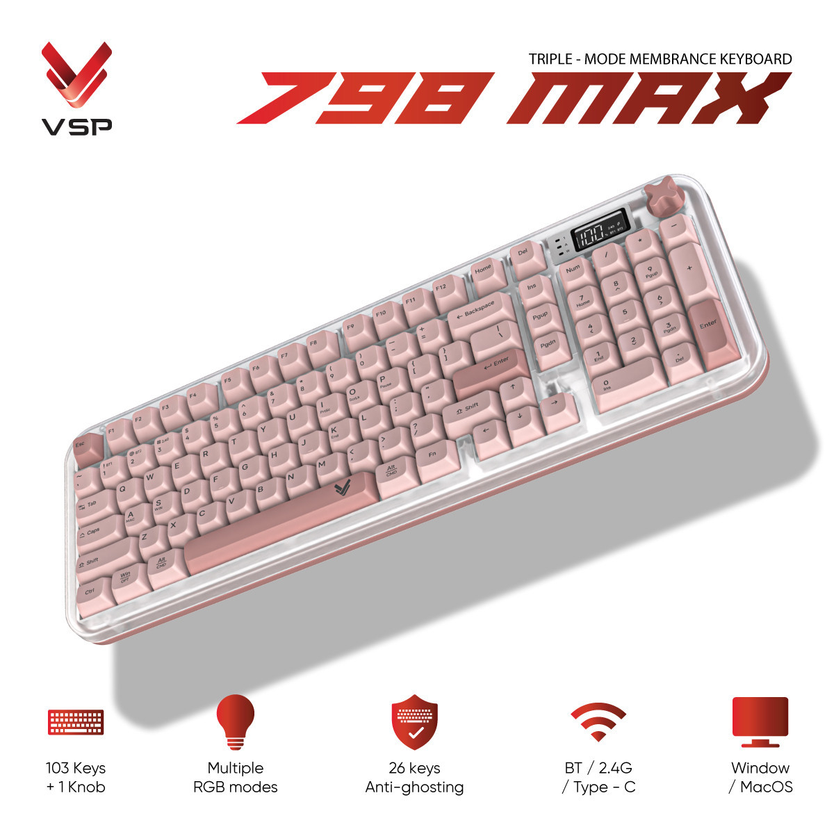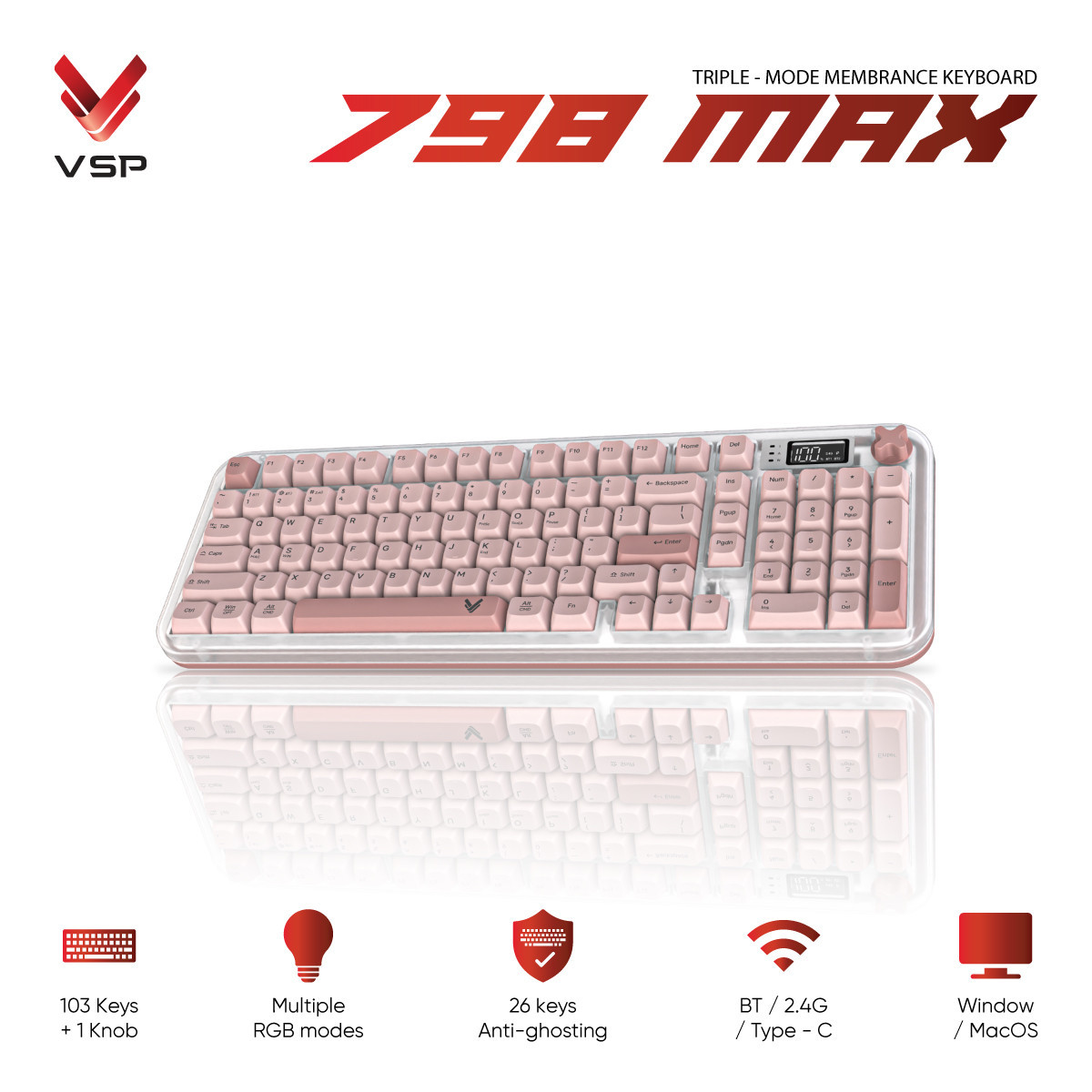 Không dây 3 chế độ / Phím màng (Membrane) giảm ồn |