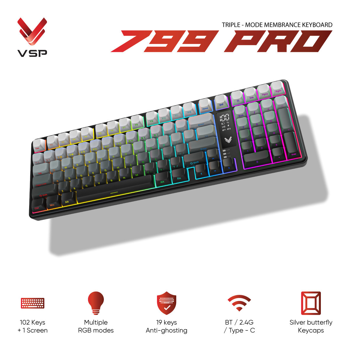Không dây 3 chế độ / Phím màng bạc dẫn (Membrane Silver Paste) |