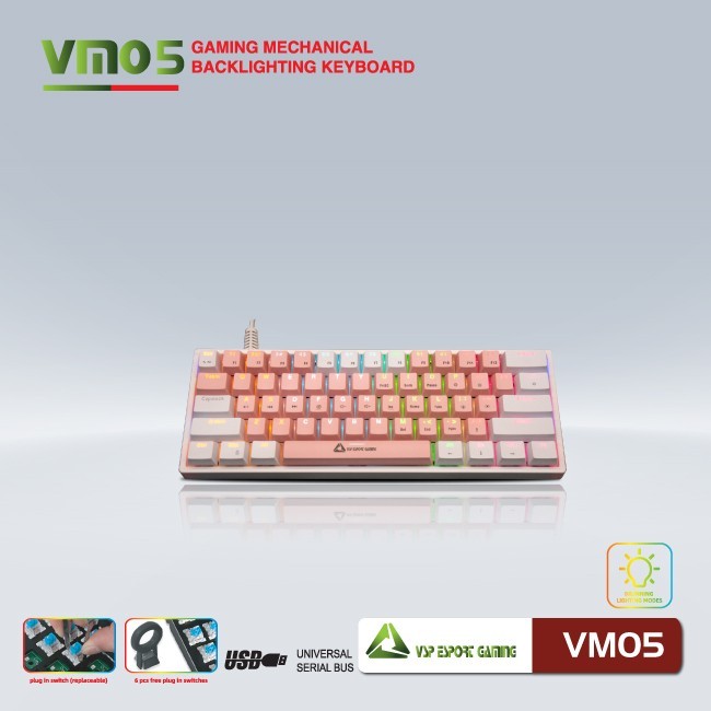 Bàn phím VSP eSport Gaming VM05 - Hồng