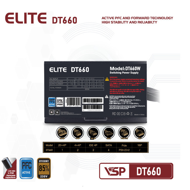 Bộ Nguồn Máy Tính VSP ELITE DT660 - 650W - Hiệu suất 85%