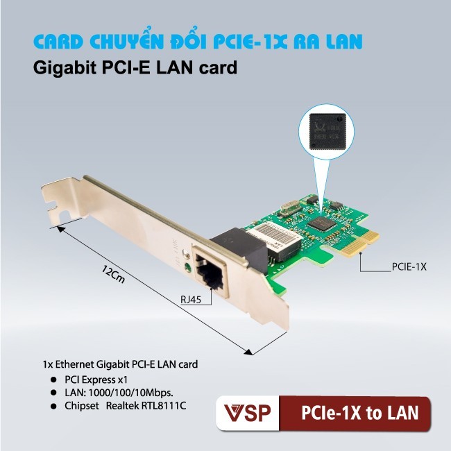 Car chuyển đổi PCIE-1x ra lan RJ45 Gigabit