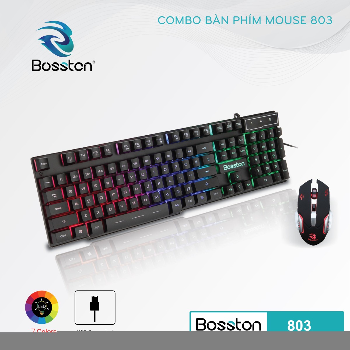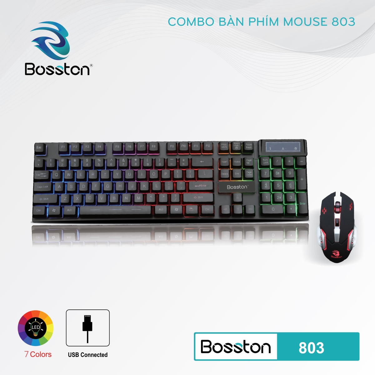 Combo bàn phím giả cơ Bosston 803 + Chuột gaming BS12 đèn Led | Màu đen