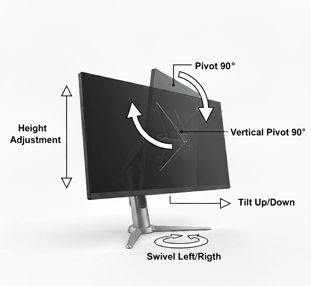 - Xoay trái/phải (Swivel) và Ngửa/Cúi (Tilt): Để chia sẻ màn hình với đồng nghiệp hoặc điều chỉnh góc nhìn thoải mái nhất.
