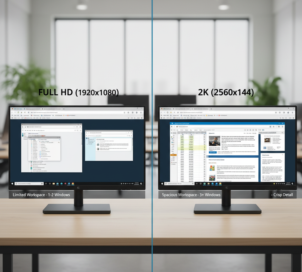 Tránh mua màn hình 27 inch mà chỉ có độ phân giải Full HD (PPI chỉ ~81). Hình ảnh và chữ viết sẽ bị rỗ (vỡ hạt), nhìn rất khó chịu và thiếu chuyên nghiệp. Nếu ngân sách eo hẹp, một chiếc VSP 24 inch Full HD sẽ cho trải nghiệm tốt hơn nhiều.