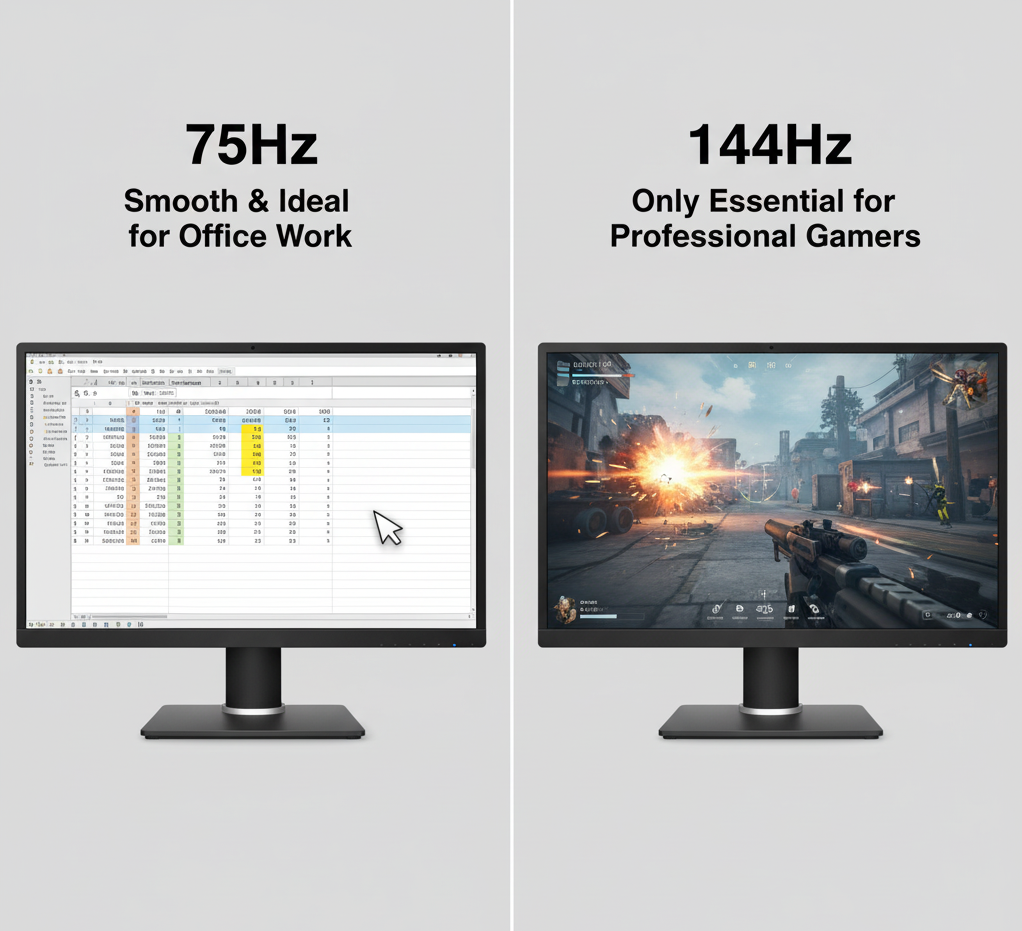 Bạn sẽ thấy quảng cáo về 144Hz, 240Hz... nhưng đó là cho game thủ. Với dân văn phòng: