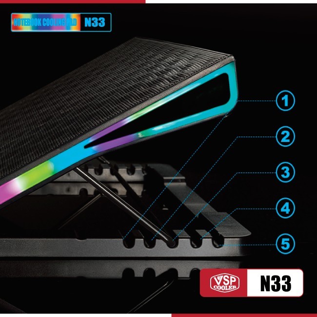 Fan tản hiệt cho laptop Notebook cooler pad N33 LED