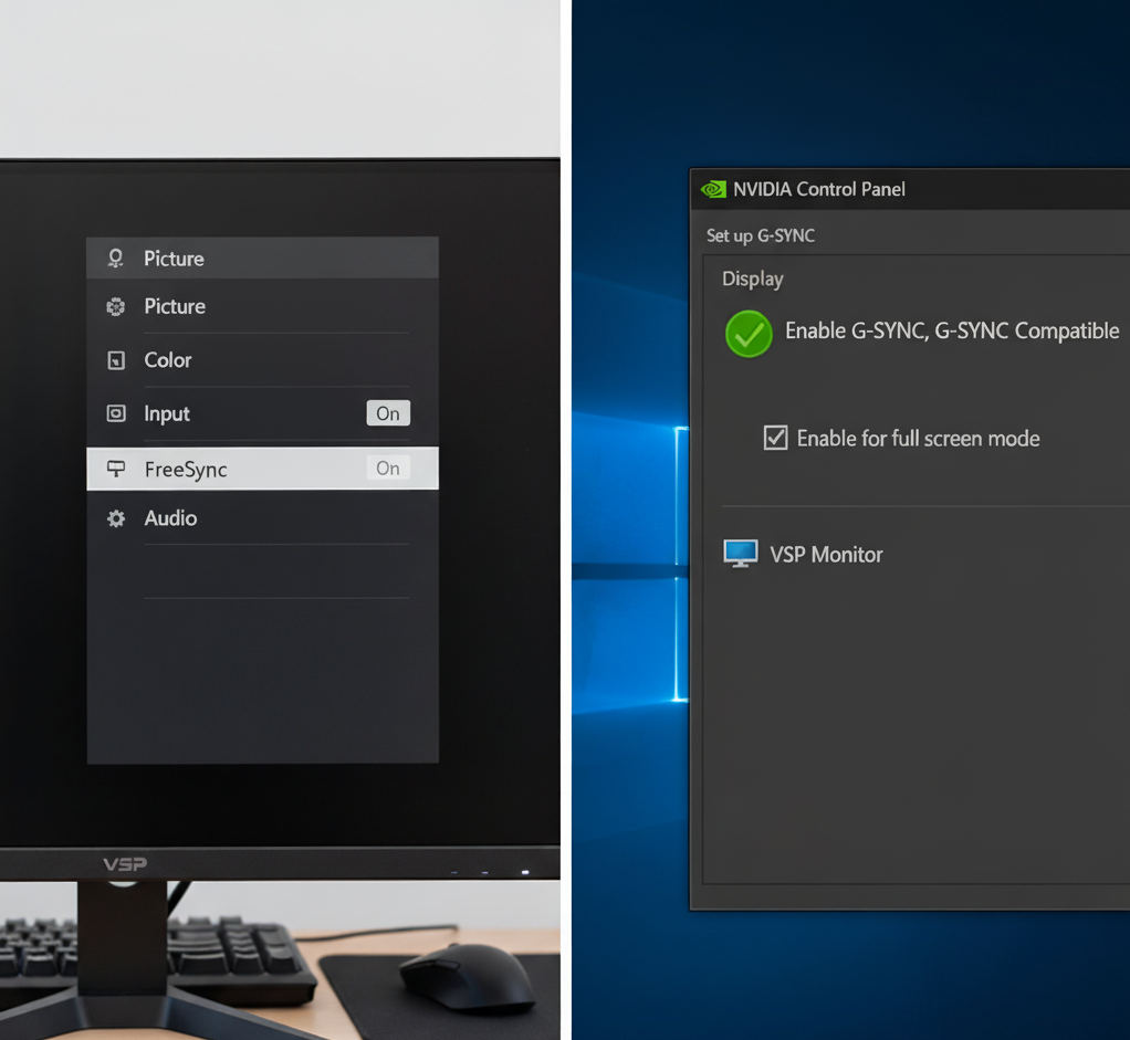 Bạn có thể mua một màn hình VSP VG Series (có FreeSync) với giá tốt, kết hợp với card NVIDIA, và bật "G-Sync Compatible". Đây là lựa chọn tối ưu nhất cho đạia số game thủ.