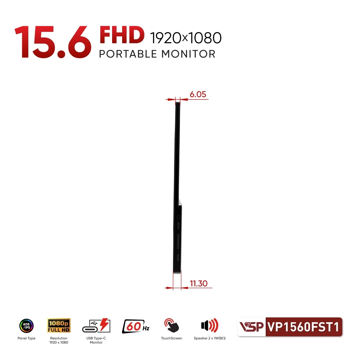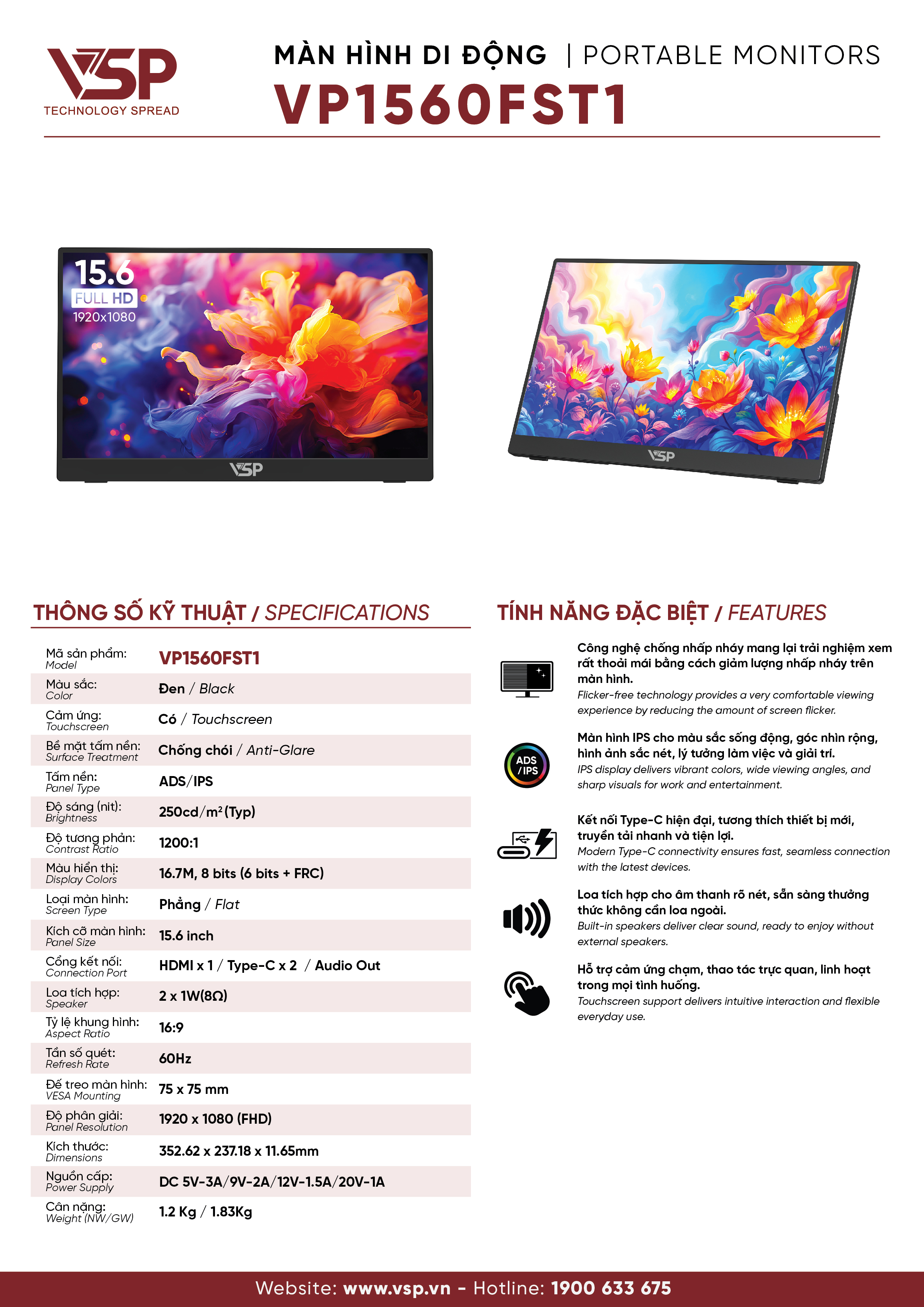 Màn Hình Portable VSP VP1560FST1 (15.6inch / IPS / ELED / FHD / 62Hz / Cảm Ứng)