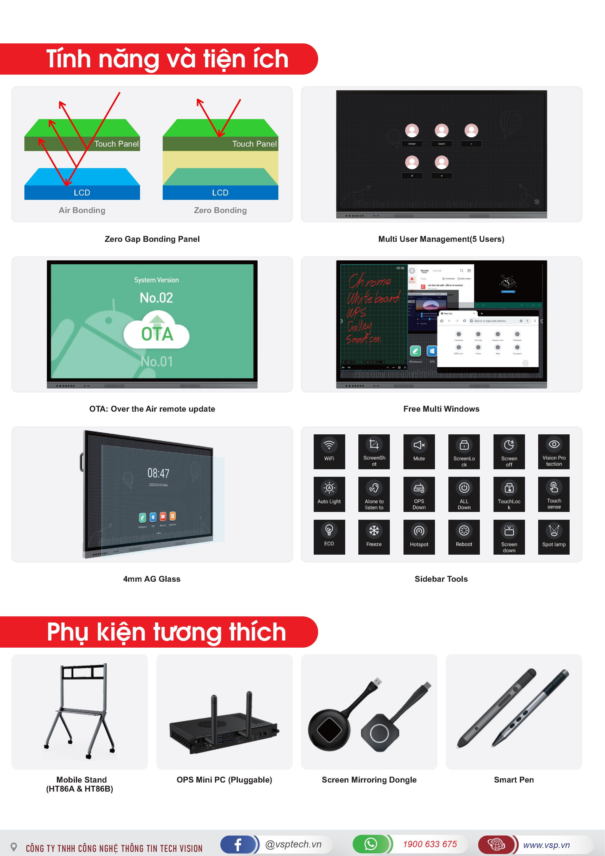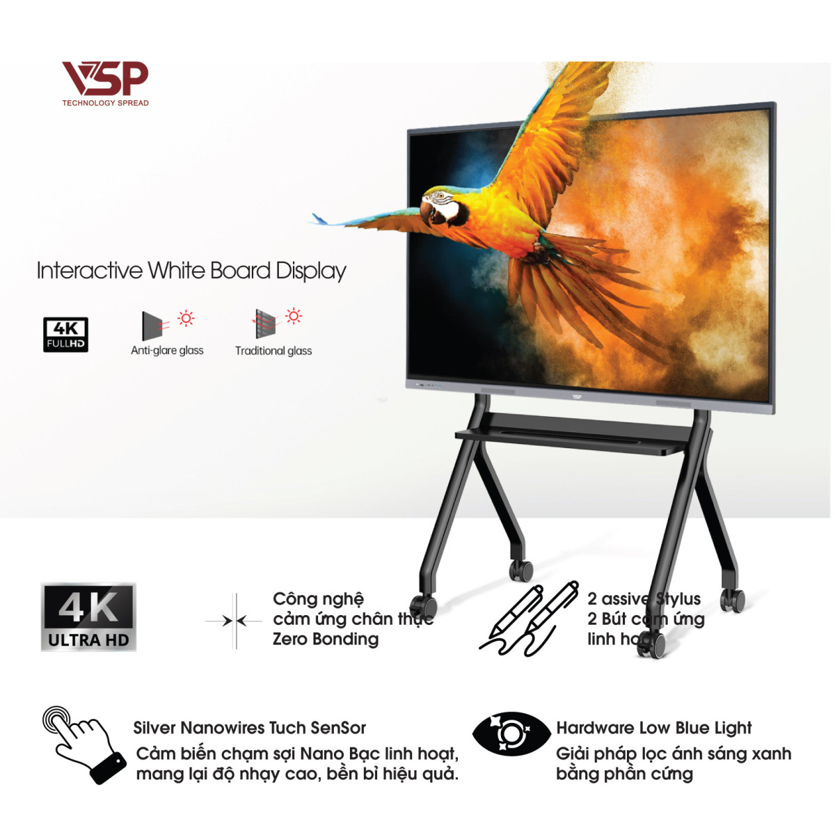 Màn Hình Tương Tác VSP IWB D8600D (86Inch / 4K / IPS / 10bit / 60Hz / 4ms / MT9679 / Quad-core Cortex-A73 / Mali G52MC1 / 8GB DDR / 128GB)