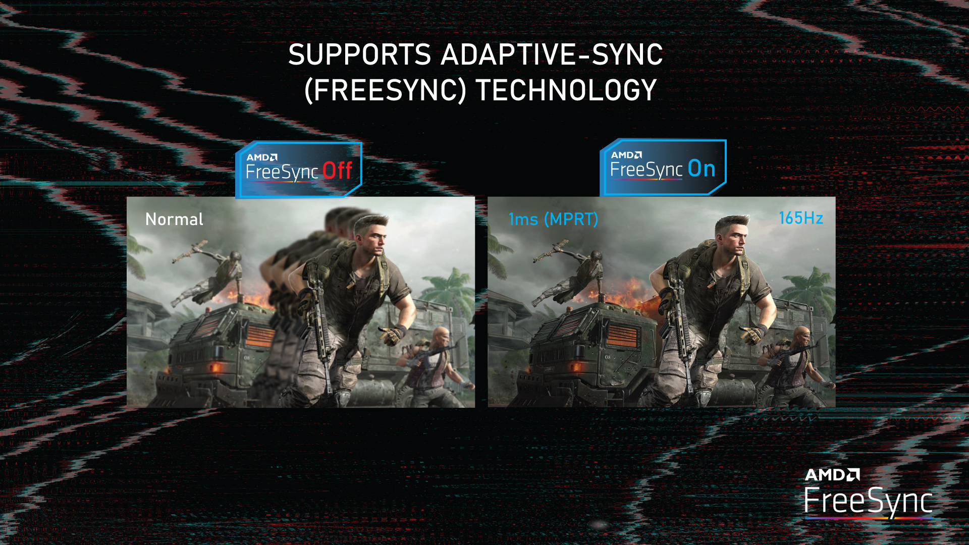 | E-ROG series có tốc độ làm mới 165Hz* nhanh và thời gian phản hồi 0,4 ms (GTG) với tính năng Adpter sync Compatible để loại bỏ bóng mờ và mang lại trải nghiệm chơi game liền mạch, không bị xé hình. |