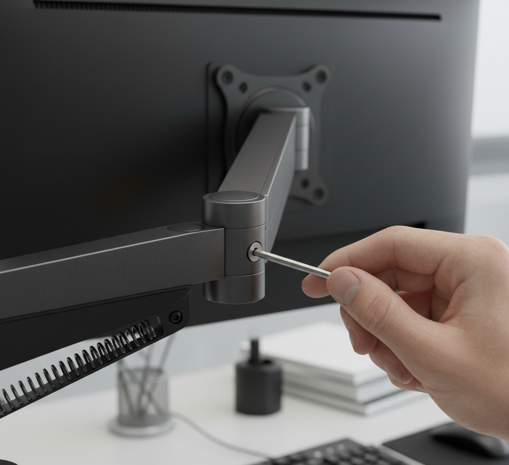 - Mẹo: Vặn cho đến khi bạn buông tay mà màn hình đứng yên ở mọi vị trí (giữa không trung) là đạt chuẩn.
