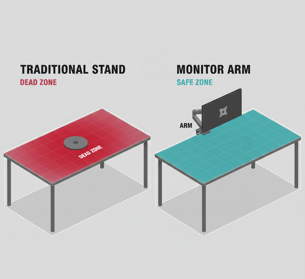 Nhiều người nghĩ rằng muốn bàn gọn thì phải mua bàn to hơn. Sai lầm! Bạn cần xử lý các "vùng chết" (Dead Zones):