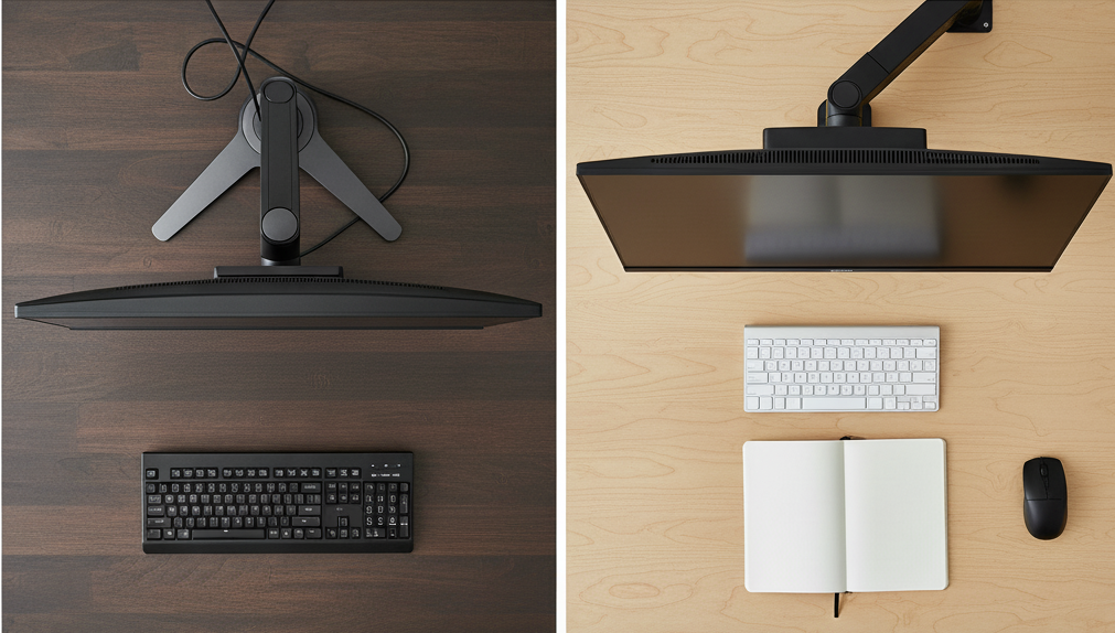 - Kẹp bàn (Clamp): Nhanh gọn, không hại bàn. Phù hợp bàn dày 1-8cm.