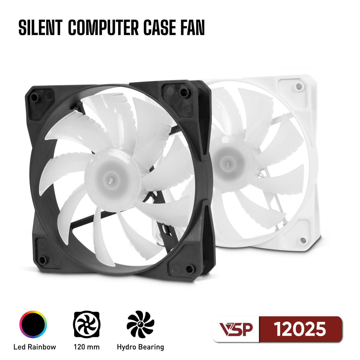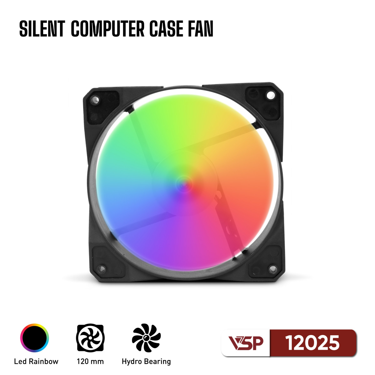 Quạt Tản Nhiệt VSP Silent Case Fan 12025 LED Rainbow - Cổng Molex - Đen