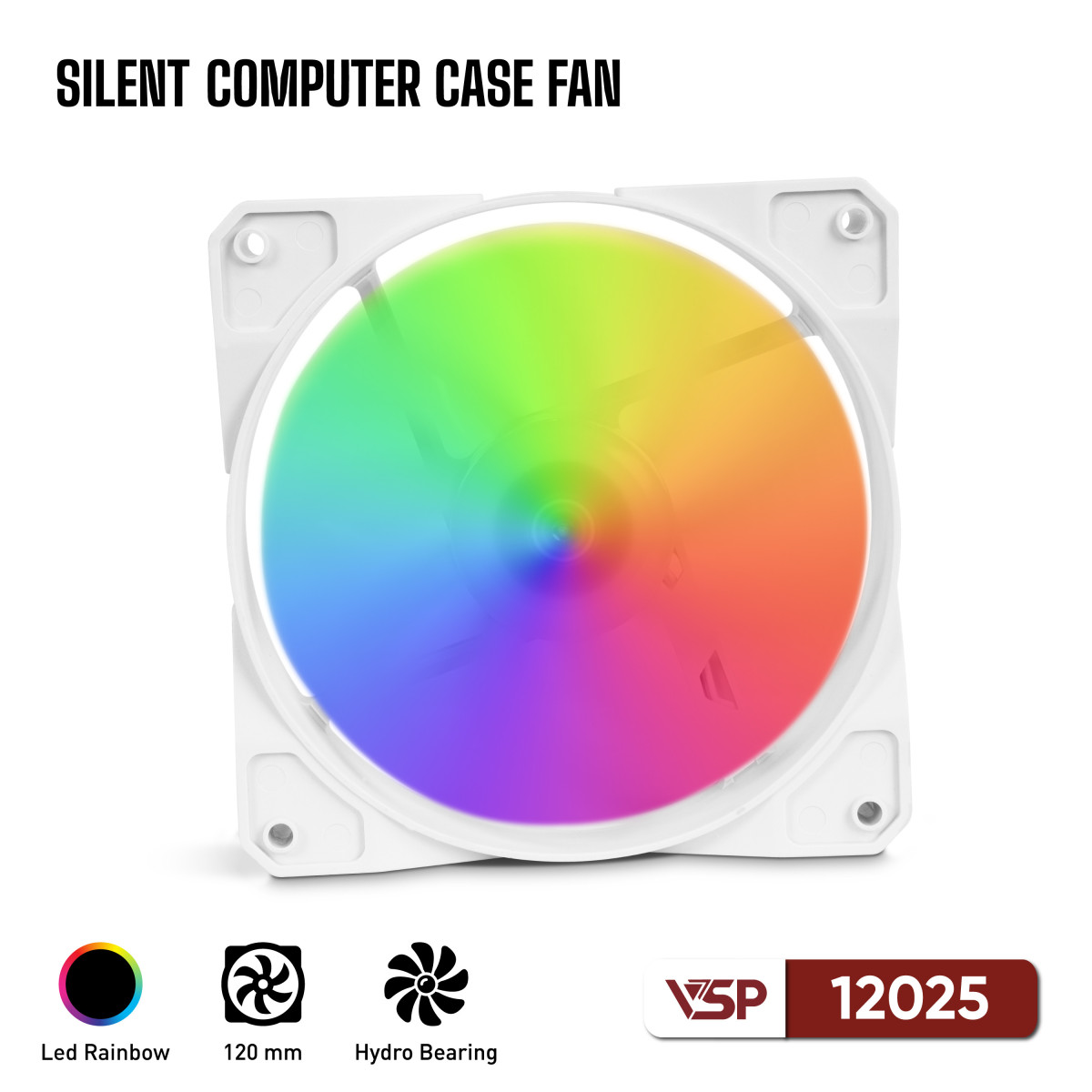 Quạt Tản Nhiệt VSP Silent Case Fan 12025 LED Rainbow - Cổng Molex - Trắng
