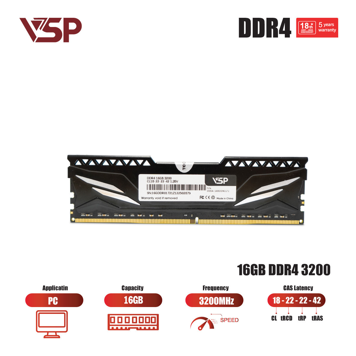 RAM Desktop VSP 16GB DDR4 3200MHz XMP Heatsink (Chipset Hynix)