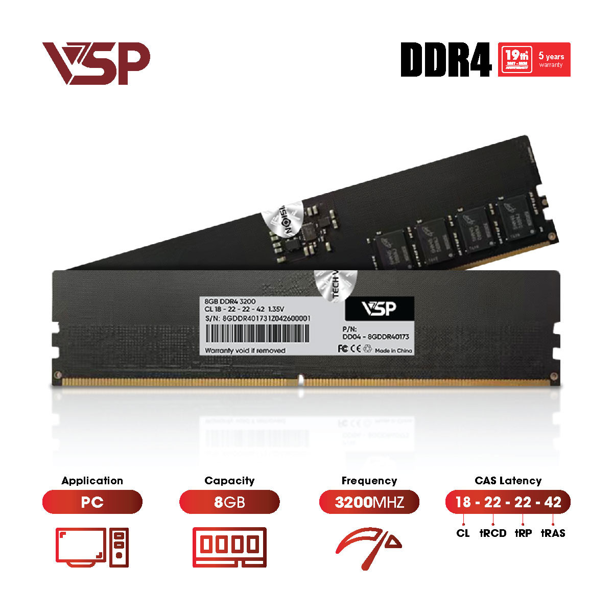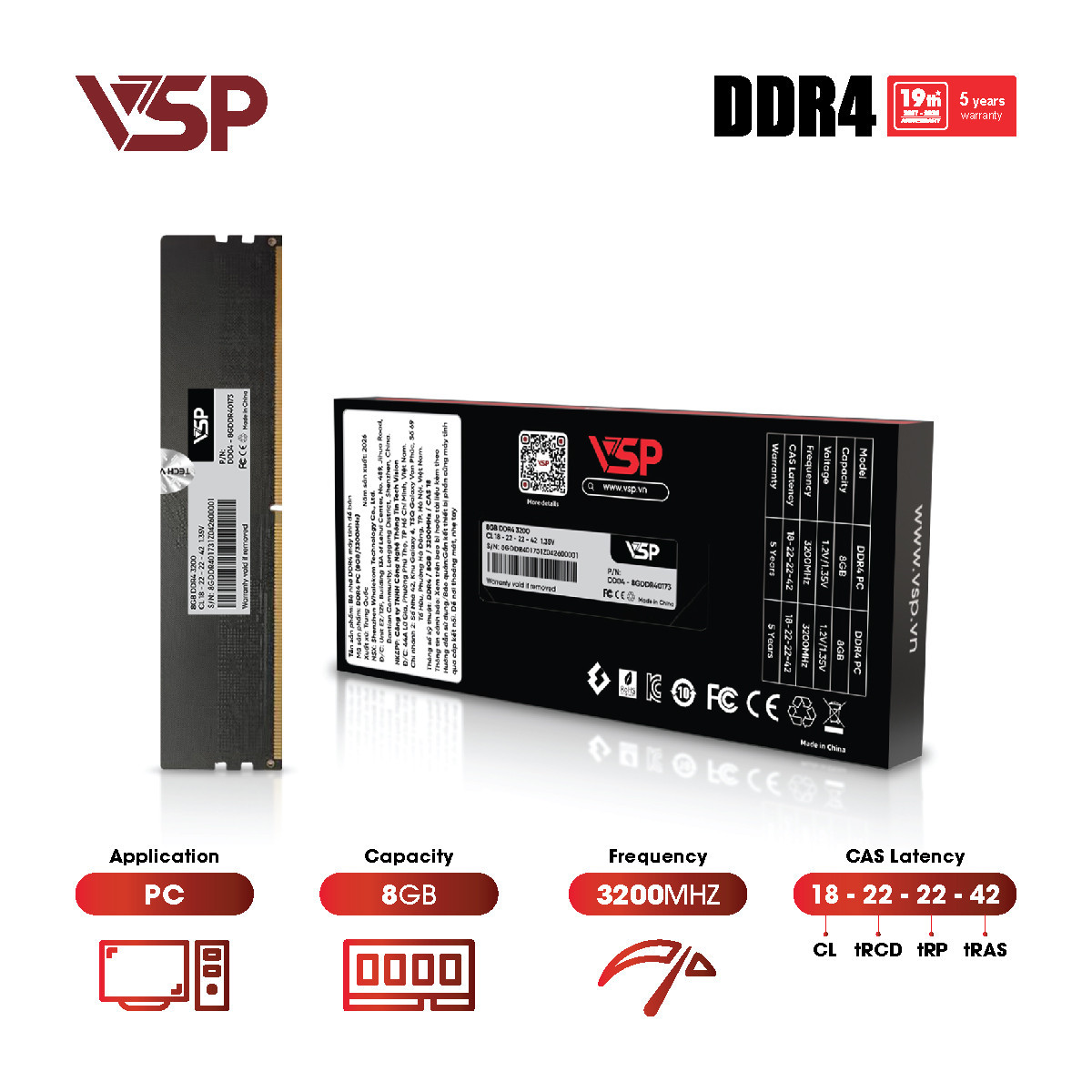 Tiết kiệm điện & Bảo hành dài hạn: Hoạt động ổn định ở mức điện áp 1.2V / 1.35V, giúp giảm thiểu điện năng tiêu thụ và hạn chế sinh nhiệt. Sản phẩm trải qua quy trình kiểm tra nghiêm ngặt và được áp dụng chính sách bảo hành chính hãng lên đến 5 năm từ VSP.