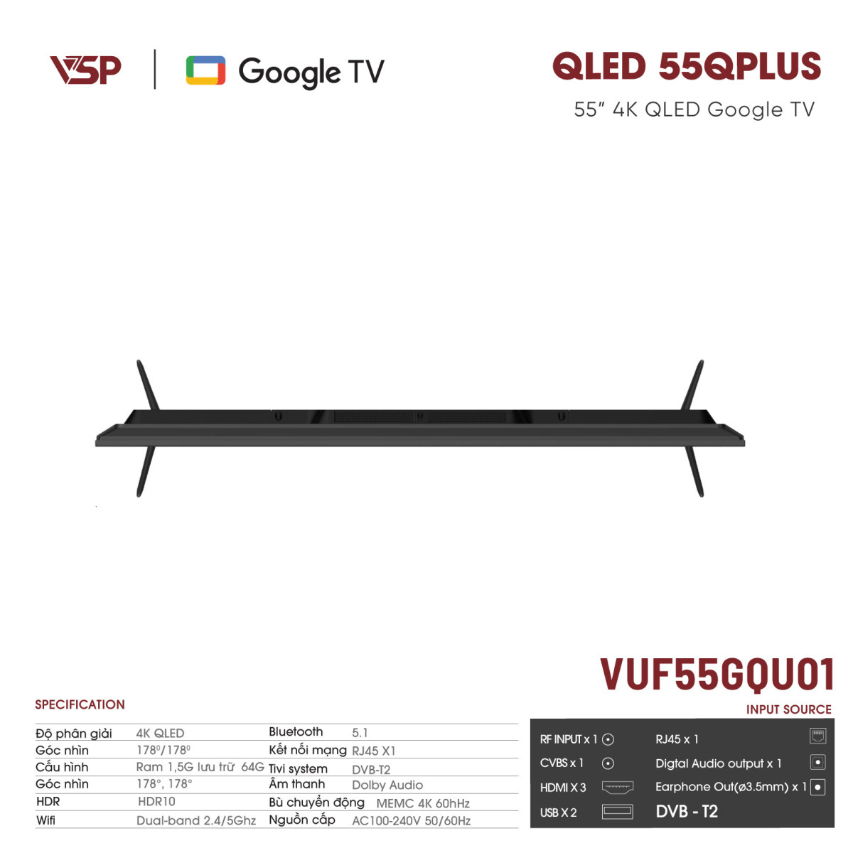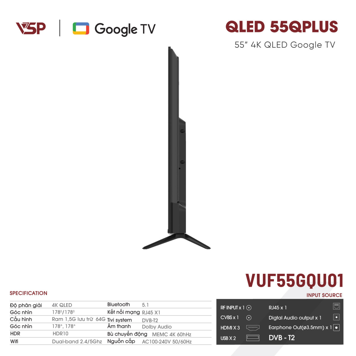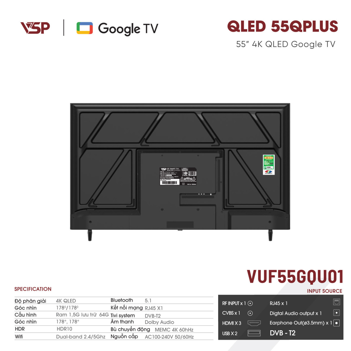 - Hệ điều hành: Google TV (Android 14.0 / RTD2865P R+5.0) - CPU: CA73 x 4 - GPU: IMG CXM-2-64 - RAM: 1.5 GB - ROM (Lưu trữ): 64 GB eMMC |