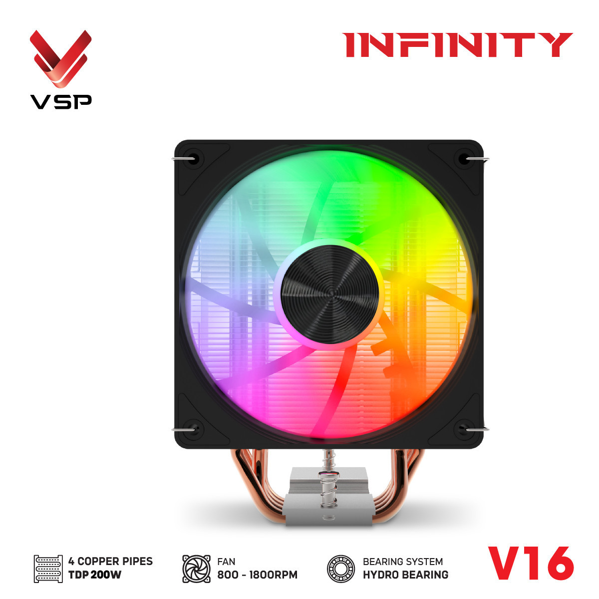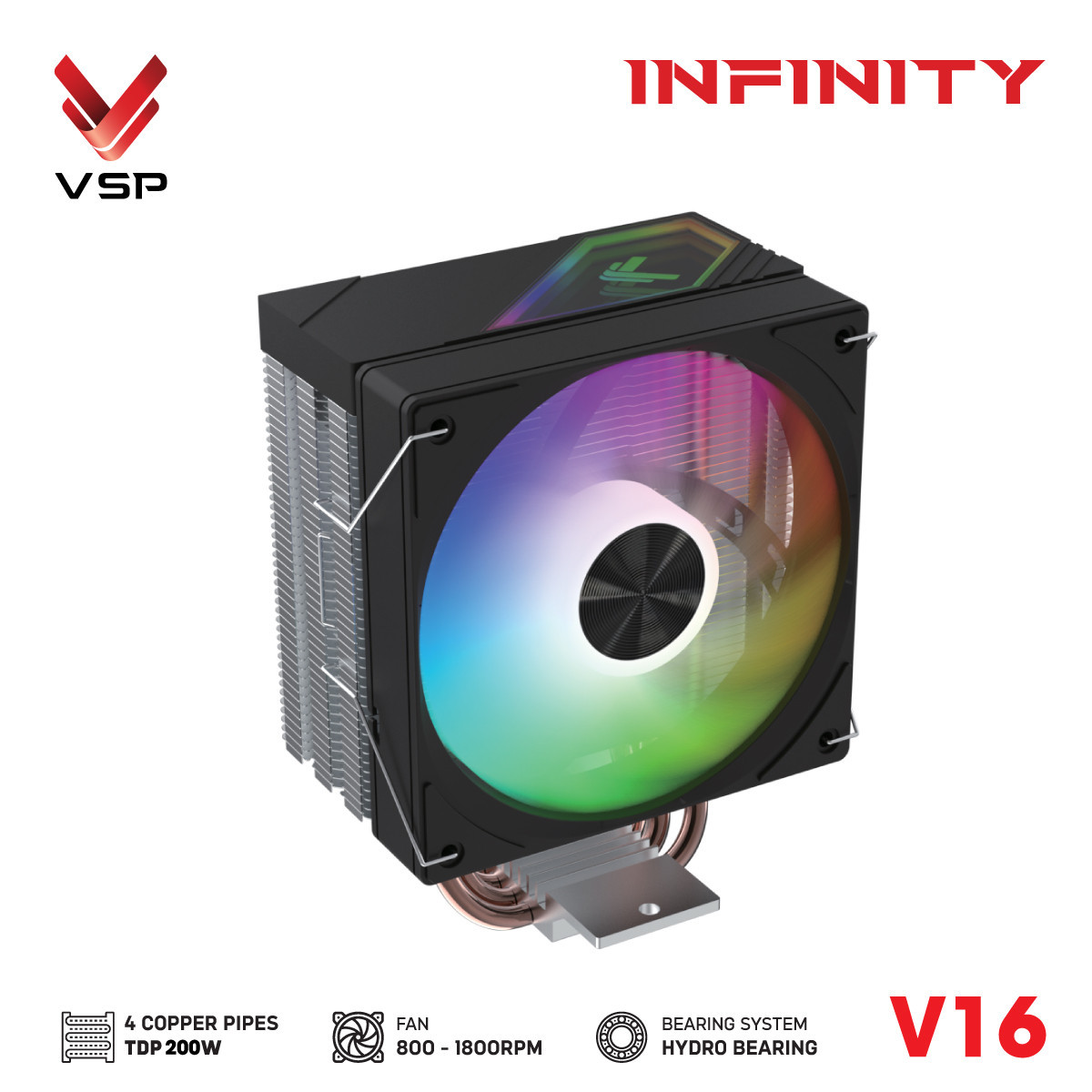 Tản Nhiệt Khí VSP V16 Đen (TDP 200W / 4 Ống Đồng / Hydro Bearing)