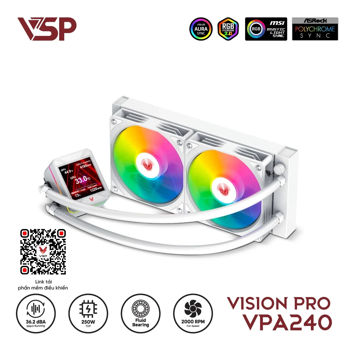 Tản Nhiệt Nước AIO VSP Vision Pro VPA-240 Trắng