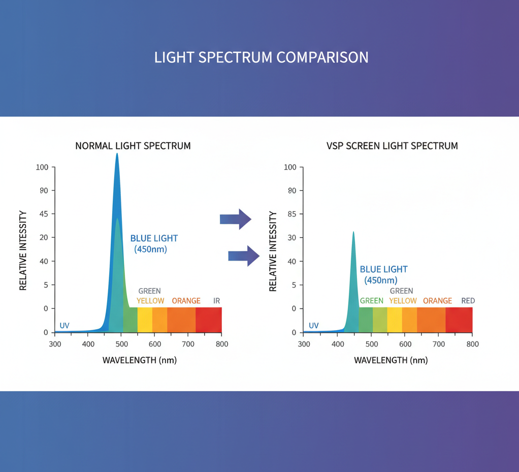 - Lọc phần cứng (Hardware Solution): Can thiệp vào cấu trúc đèn nền LED để giảm đỉnh ánh sáng xanh có hại ngay từ nguồn phát.