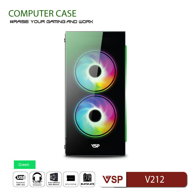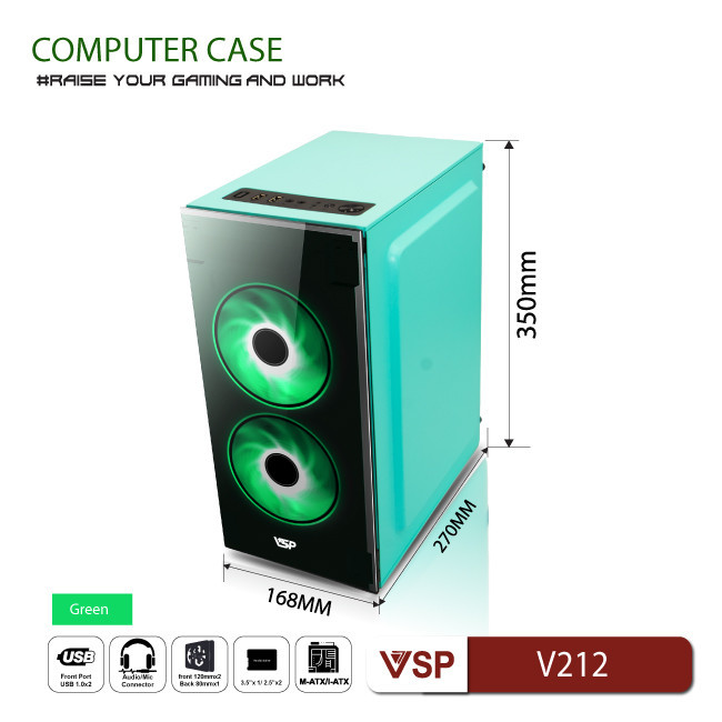 Vỏ Case Máy Tính VSP V212 - Xanh - Không Kèm Fan