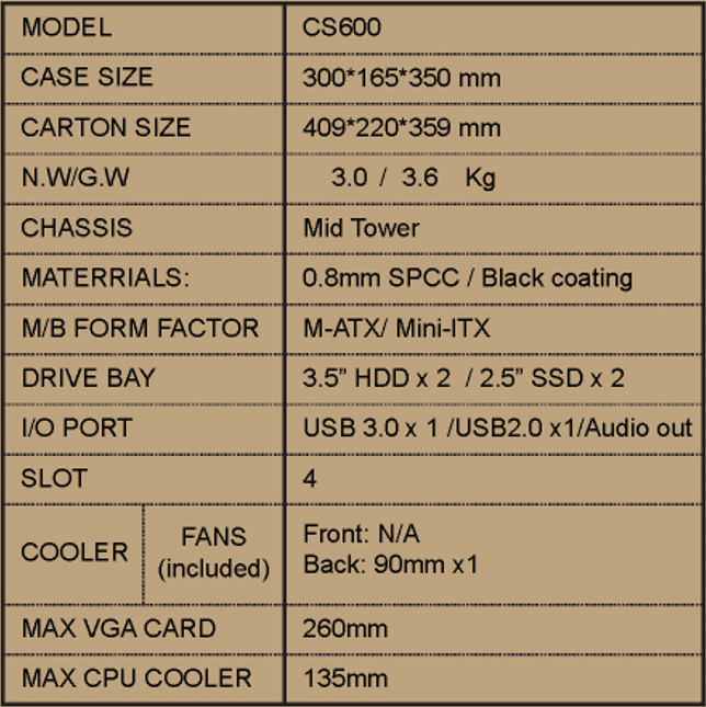 Với kiểu dáng Mid Tower gọn gàng, Vỏ Case Star CS600 phù hợp với hầu hết các setup PC hiện nay. Khung làm từ thép SPCC dày 0.8mm, phủ sơn đen tĩnh điện giúp tăng độ cứng cáp và hạn chế trầy xước, đồng thời mang lại vẻ ngoài mạnh mẽ, đậm chất gaming.