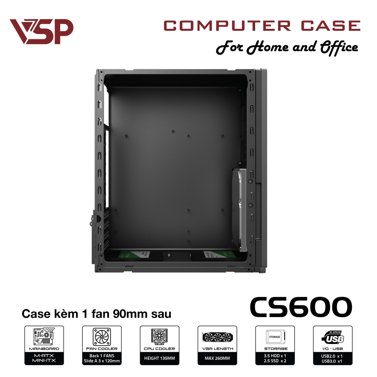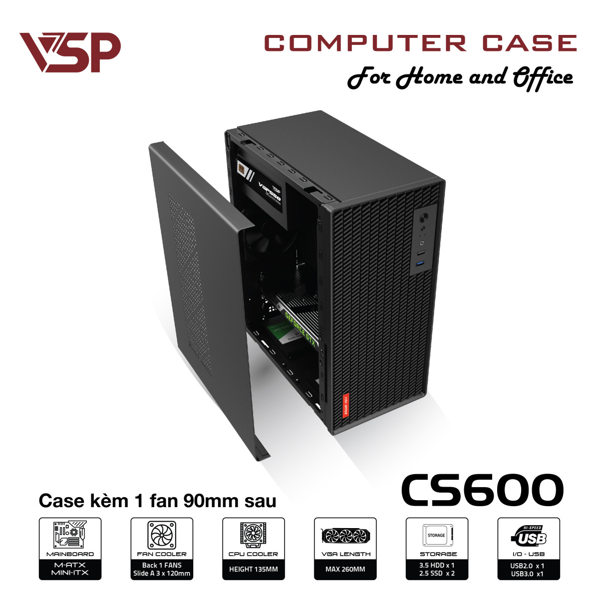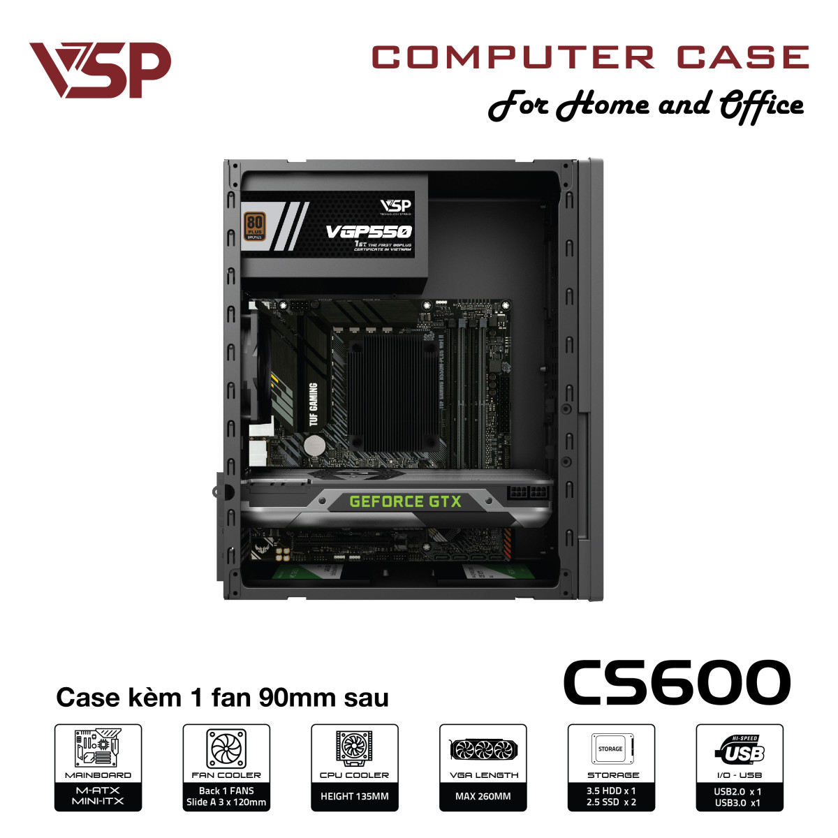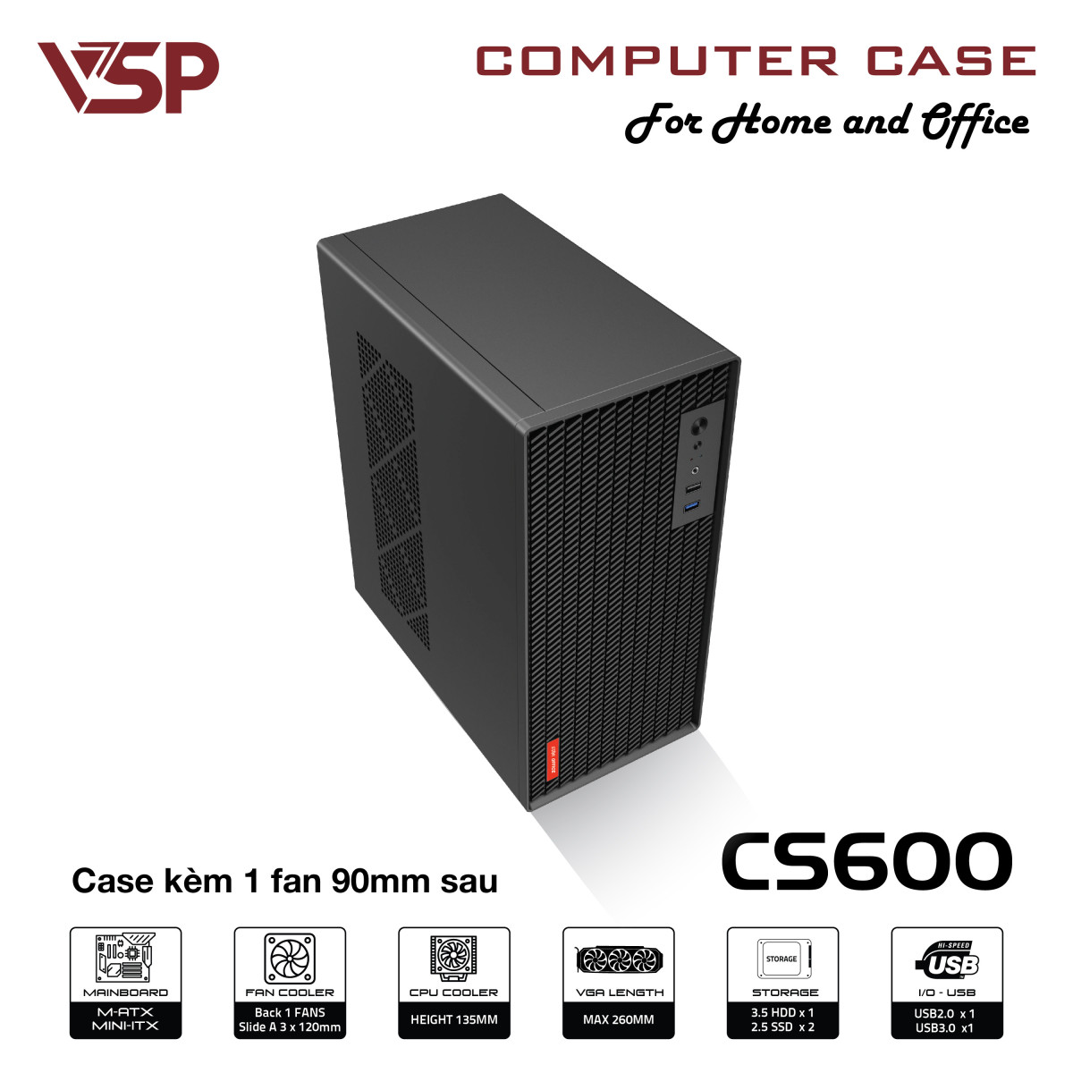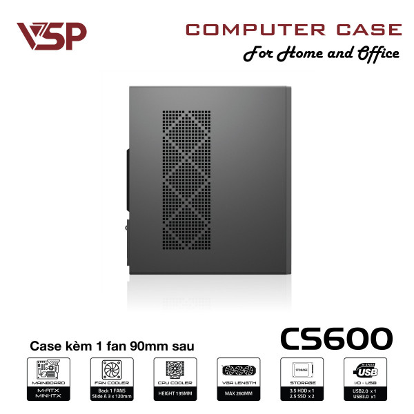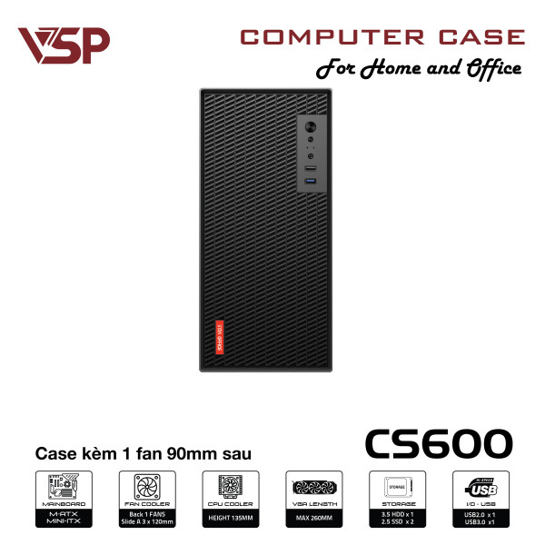 Case hỗ trợ VGA dài tới 260mm và tản nhiệt CPU cao 135mm, đáp ứng hầu hết nhu cầu build máy phổ thông đến gaming tầm trung. Với 4 khe mở rộng và vị trí lắp ổ cứng linh hoạt (HDD × 2, SSD × 2), Star CS600 cho phép nâng cấp dễ dàng trong tương lai.