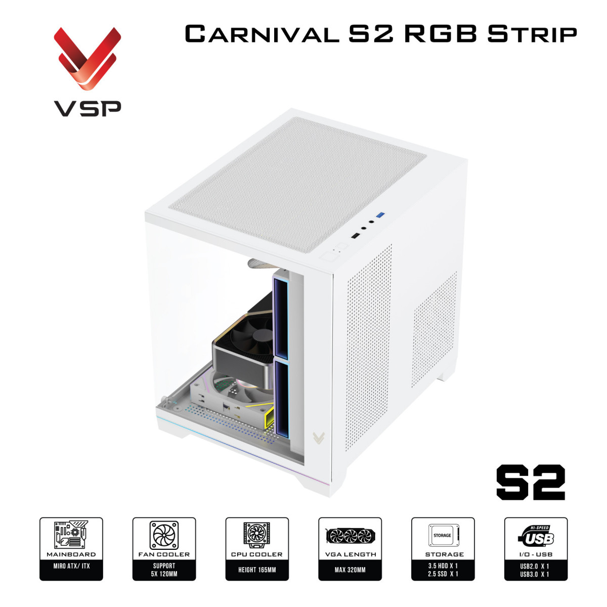 Vỏ Case VSP Gaming Carnival S2 RGB Strip White